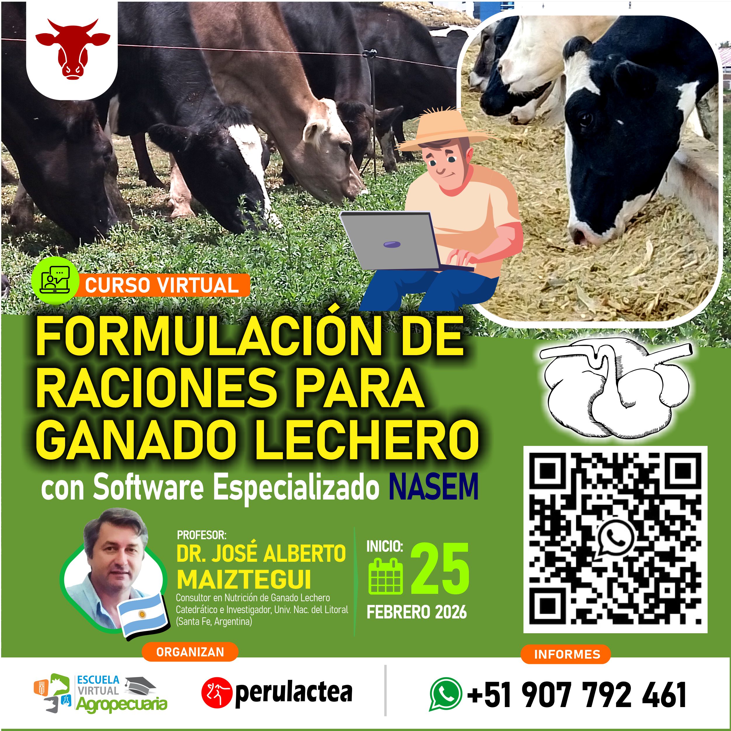 Porque es un curso que ofrecerá material actualizado sobre alimentación de ganado lechero en sus diferentes categorías, empleando a la vez el entrenamiento para el manejo y uso de un software para formular raciones, denominado NASEM y que es la principal herramienta para manejo nutricional que vienen usando las ganaderías lecheras a nivel mundial. Este software quedará instalado en su computadora de forma indefinida.